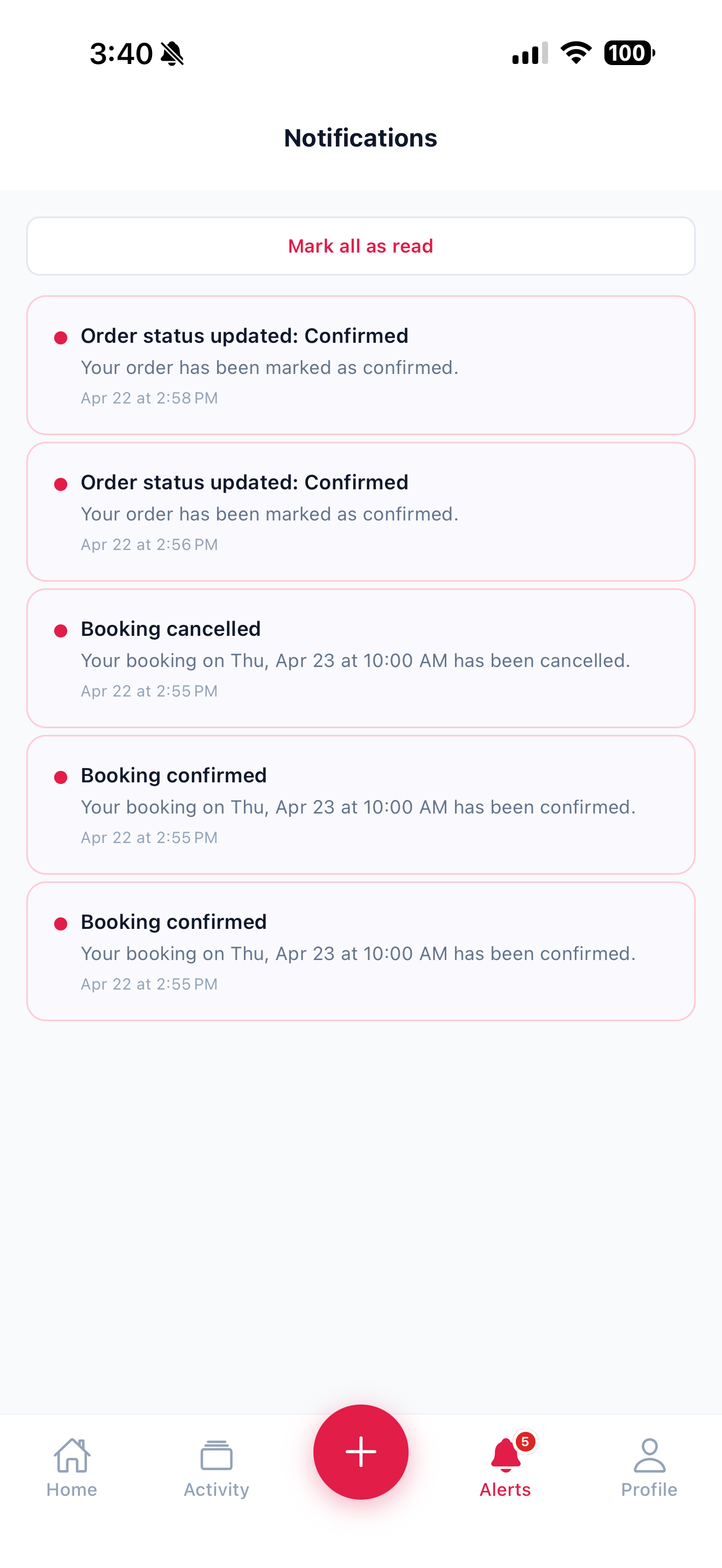 In-app, push, SMS, and email alerts